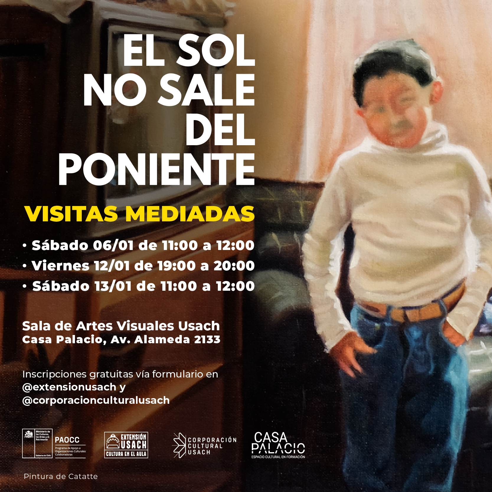 La exposición, compuesta por artistas provenientes de diversas regiones del país, presenta una serie de pinturas y formatos que reflejan parte de la cotidianidad y técnicas propias de sus expositores. Domi Toledo, Norte Pyro, Catatte, Lágrimadeoro, Seance, Azultramar, Juan Espejo, Findelkarmam, Elena Viruta, Luciano, Sofía Lagos Rivera, Sagrada Espinoza, Nihil y YAEZ son las y los participantes de El sol no sale del poniente. Nuevos márgenes de la pintura local. Muestra abierta hasta el 19 de enero y organizada entre el Departamento de Extensión y la Corporación Cultural Usach reúne a distintos talentos emergentes que nunca habían presentado sus obras en galerías de arte.